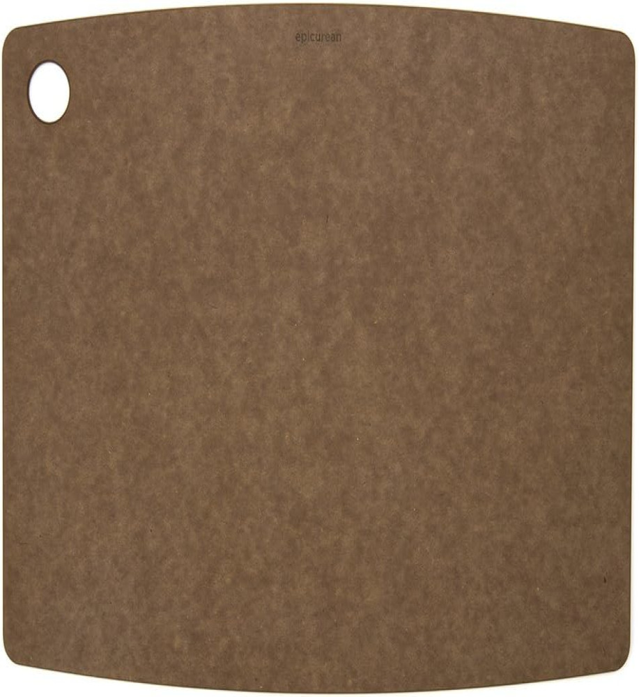 17.5-Inch x 13-inch cutting board in nutmeg; made in the USA from Richlite paper composite material; makes the cutting board durable, knife friendly, non-porous